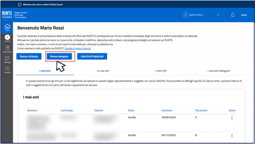 - Come si conferisce (e revoca) la delega: la delega può essere inserita attraverso l’apposita procedura online tramite il portale RUNTS all’interno del quale si avrà la possibilità di attivare nuove deleghe, monitorare e/o modificare lo stato delle deleghe già attive, revocare una delega precedentemente emessa.