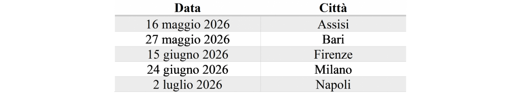Il ciclo di eventi toccherà cinque città italiane: